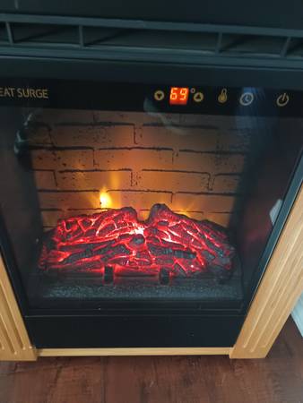 Portable fireplaces heater easily moves from room to room when needed. Great portable heat. Height 25 inches width 18 inches depth 12 inches. In excellent working condition.heater, heat electric...