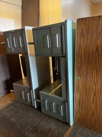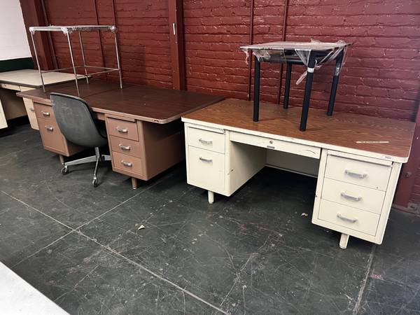 lockers , file cabinets , filing cabinets , white boards flat files supply cabinets training tables storage shelves used office desks used office chairs client chairs lobby chairs meeting tables flammable cabinets fire proof cabinets carts lunch room tables lunch room chairs herman miller hon steelcase knoll haworth humanscale book cases work stations L-shape desks book shelves glass tanker desks glass boards height adjustable desks electric desks desk conveters conference tables reception desks sofas couches club chairs index cabinets metal bins lateral files vertical files pedestal file cabinets coffee tables side tables rolling stair case work benches credenzas vintage tables vintage chairs