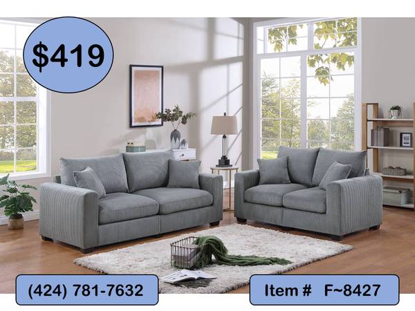 F~8875: 2 Pcs Light Gray Sofa & Love Seat Set ~ $499
