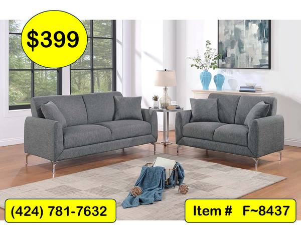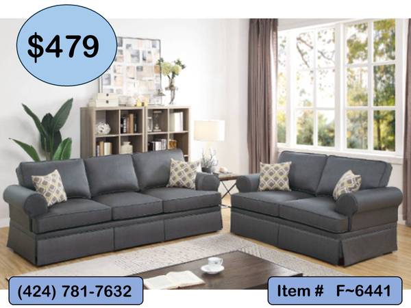 F~6441: 2 Pcs Charcoal Gray Sofa & Love Seat Set ~ $479