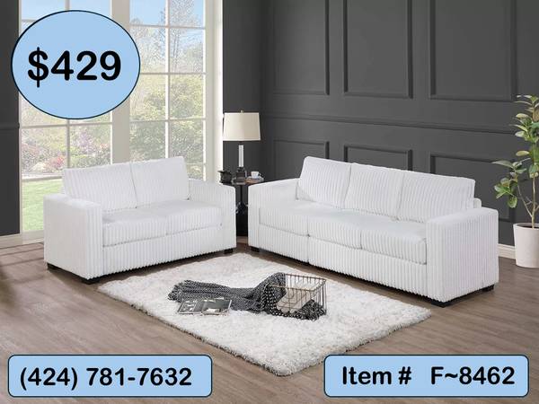 F~8462: 2 Pcs Milk Sofa & Love Seat Set ~ $429