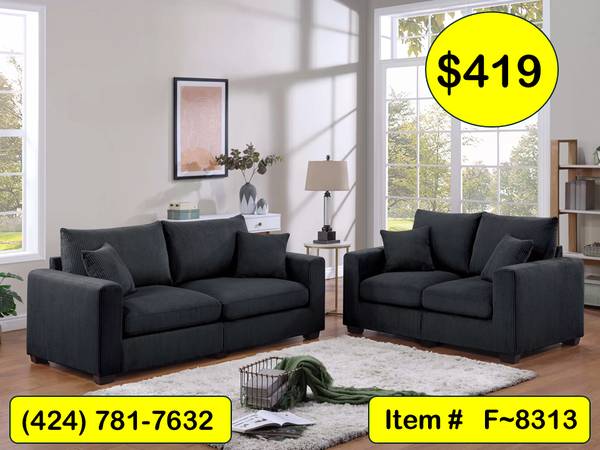 F~8313: 2 Pcs Black Sofa & Love Seat Set ~ $419