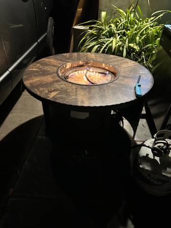 OW Lee Casual Fireside Santorini Wrought Iron 42" Wide Round By 24” Height Used regular propane tank Come with OW Lee Brown Color Glass Gem Used in good condition Cost $4000 $1200 Call text...