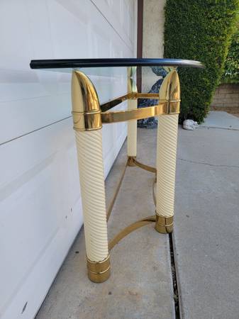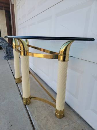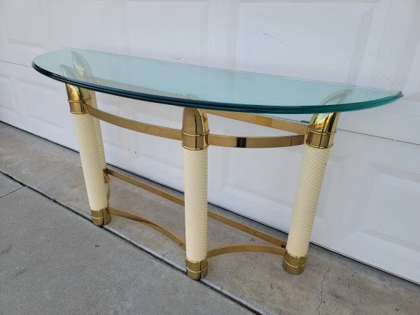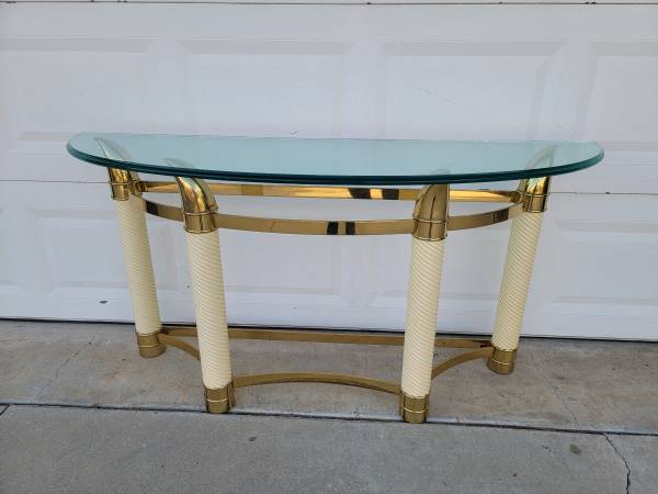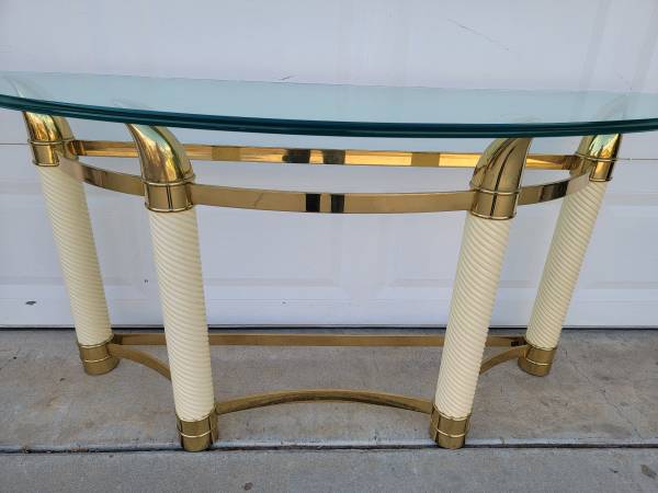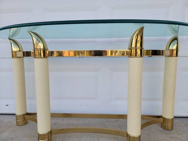 Amazing 1970s hollywood regency vintage italian brass and glass console table, perfect for your house, apartment, livingroom, entryway house etc. in good condition, available for sale now, for question contact at Efrain, at cell phone number. show contact info
