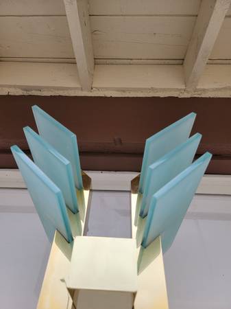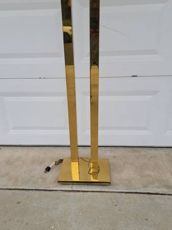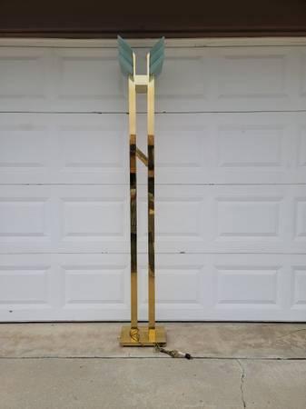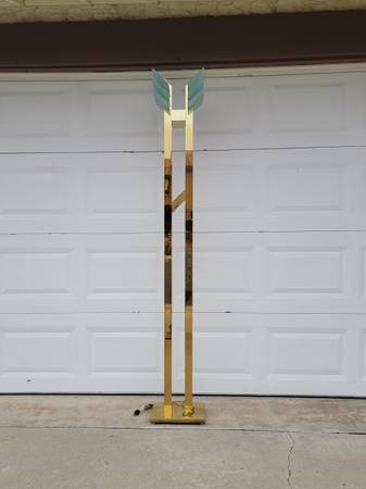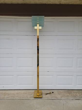 Beautiful hollywood regency brass and glass floor lamp, perfect for your house, apartment, livingroom, bedroom, office, studio, library, for decoration etc. in good condition, (one glass has a small chip) available for sale now, for question contact at Efrain. at cell. phone number. show contact info