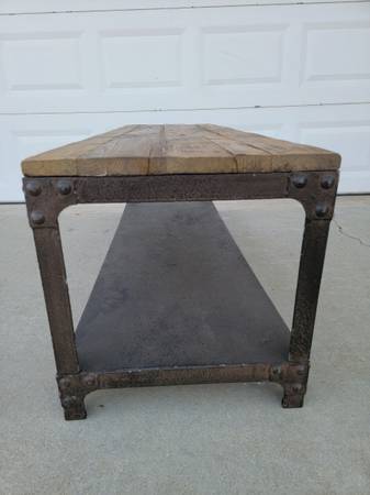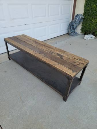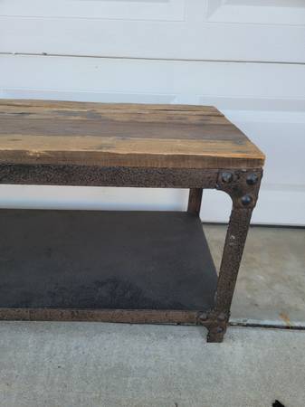 Rustic metal bae and wood bench, perfect for your house, apartment, outdoor, patio, backyard etc. in good condition, available for sale now, for question contact at Efrain. at cell phone number. show contact info