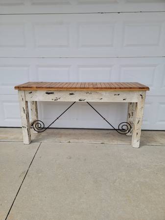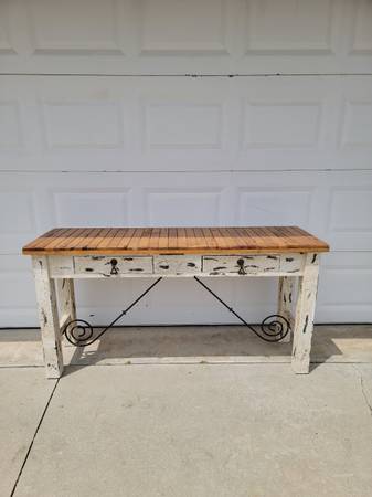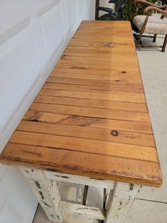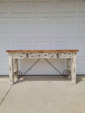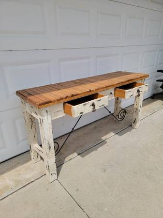 Beautiful rustic wood console table, perfect for your house, apartment, livingroom, entryway house, office, studio etc. (in rustic condition) available for sale now, for question contact at Efrain. at cell. phone number. show contact info