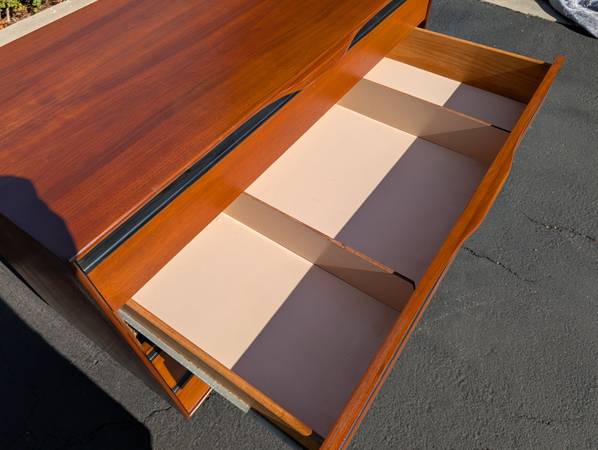 For your consideration is a stunning chest of drawers designed by John Kapel for Glenn of California, c1960s. Overall excellent refinished condition. Walnut frame with sculpted handles. Drawers include dividers. Mcm, mid century era.