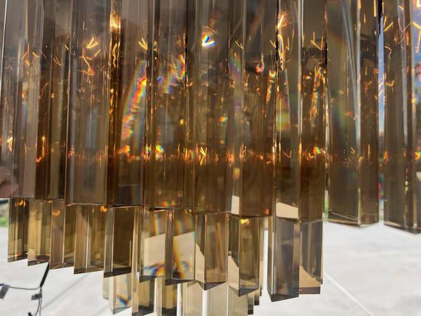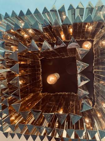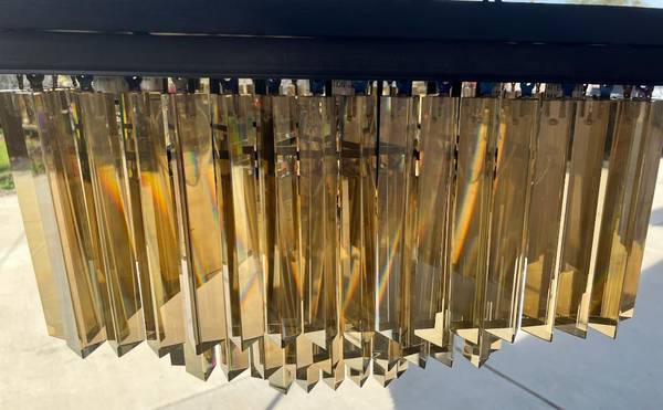 Brand New Restoration Hardware Odeon Crystal Square Iron Finish Chandelier 13 Light Flush mount Color Champagne Measurements 21-1/4" x 21-1/4" wide x 18" long