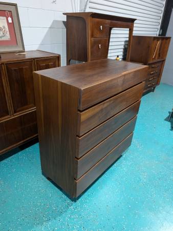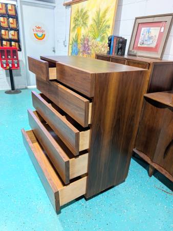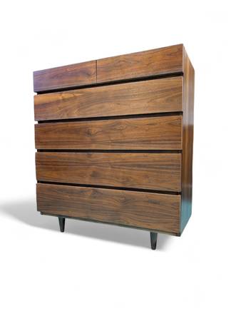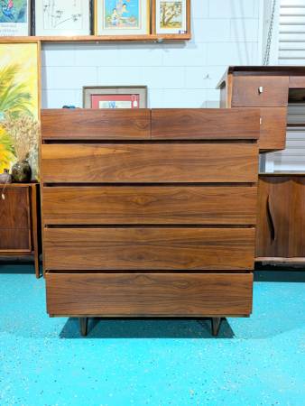 Clean lines, rich walnut, timeless design. This American of Martinsville high chest is the MCM upgrade your space deserves. Six drawers of pure style. It's in excellent condition and ready to go!