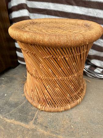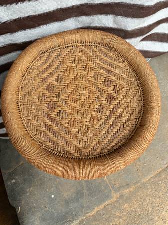 Woven table / round table Some unraveling at the base 19” diameter by 18” tall