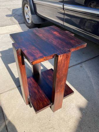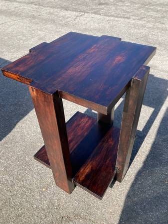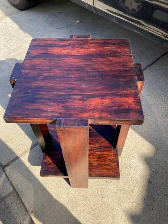Solid Wood, heavy modern table / abstract table / nightstand / end table. Excellent condition. Sturdy and heavy. Skillfully crafted. 18” square top by 24” tall