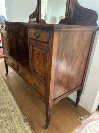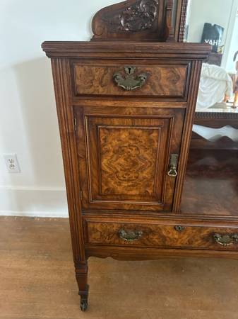 Absolutely gorgeous antique vanity / antique mirror / burled wood vanity.