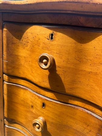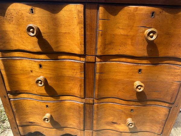 Stunning pair of oversized nightstands / end tables / small dressers with serpentine fronts
