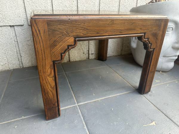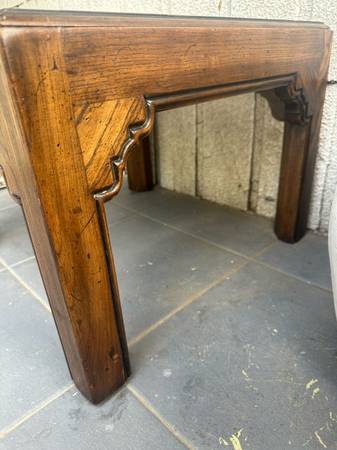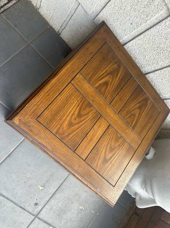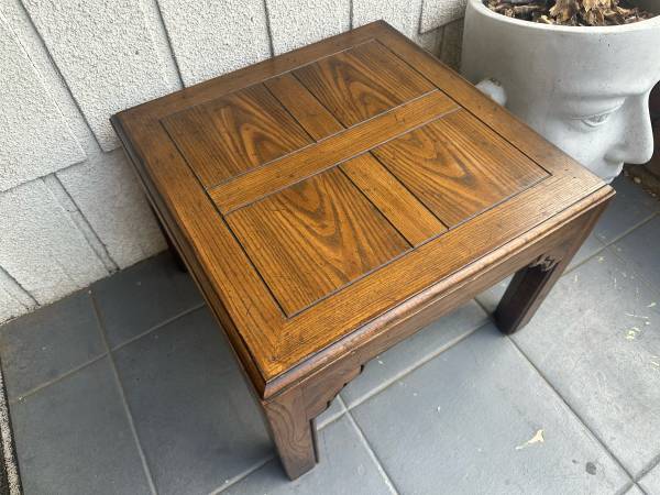 Vintage dark oak table / vintage square table / vintage stand. Solid and sturdy. Well made and well kept. Fairly heavy. Great lines. Similar sell for $400 (see photo). 22 1/8” square top by 16 1/2”...