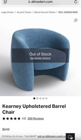 Brand New. All Modern Brand Barrel Chair (Blue). $299. Only 1 available.