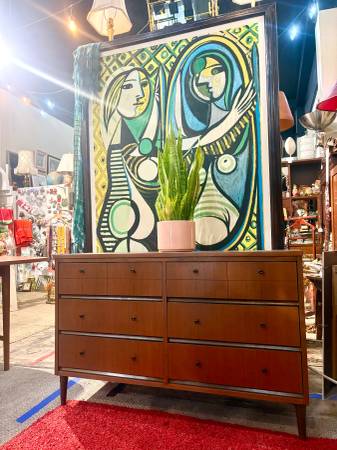 Cyber Week Is Still On!!🎉 SAVE 20% OFF!! On this Lovely Morris of California 6 Drawer Dresser, from the Town-Set Series, which features a gorgeous walnut grain, which has been professionally refinished, beautiful tapered legs, 6 drawers for ample storage and a stunning classic design!!