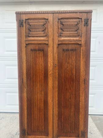 Item # AAZ52 Vintage Solid Oak Double Wardrobe