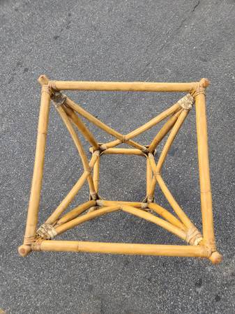 47" MCM Vintage Boho Chic Rattan Bamboo Round Dining Table with Glass Top Coastal Style Hollywood Regency