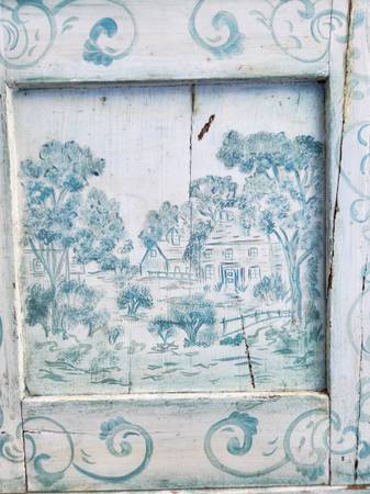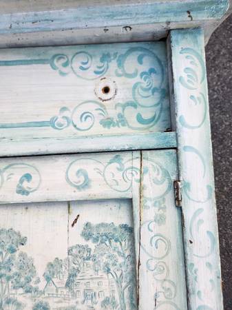 Antique 1900 Hand Painted Wood Cabinet Nightstand Side End Lamp Wine Table Cupboard