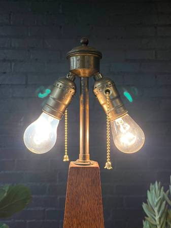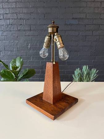 Antique Arts & Crafts Oak Pyramid Style Table Lamp, c.1940’s $395 - Newly Rewired, No Shade Dimensions: 16.75”H x 8”W x 8”D Local Delivery Is Available 👉 www.vintagesupplystore.com 👈 Instagram:...