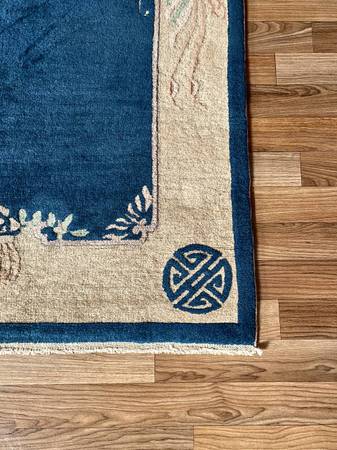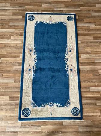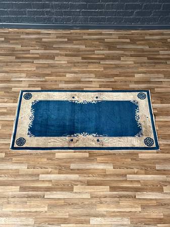 Antique Chinese Art Deco Rug w/ Blue Field & Cream Border, c.1920’s