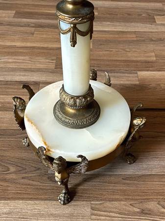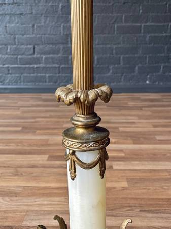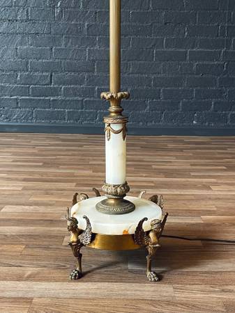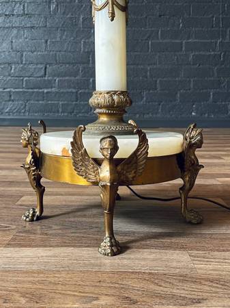 Antique French Neoclassical Style Gilt Bronze & Onyx Floor Lamp w/ Winged Caryatids, c.1930s