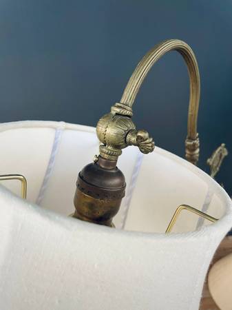 Antique Iron Floor Lamp with Original Shade, c.1930’s $450 - New Linen Shade Dimensions: 56.75”H x 19.50”W x 12.25”D Local Delivery Is Available 👉 www.vintagesupplystore.com 👈 Instagram:...