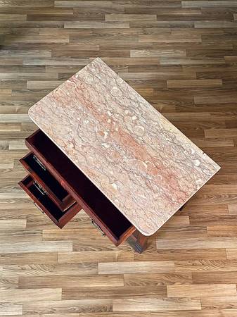 Antique Serpentine Entry Stand Dresser w/ Pink Marble Top, c.1940’s