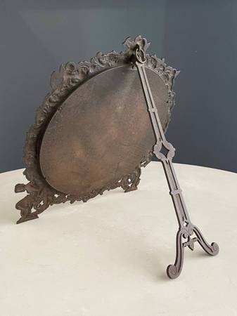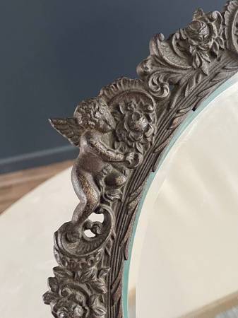 Antique Victorian Metal Vanity or Wall Mirror with Cherub Details,...