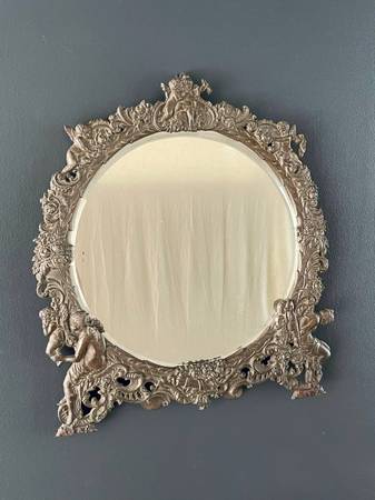 Antique Victorian Metal Vanity or Wall Mirror with Cherub Details, c.1920’s $550 - Original Vintage Condition Dimension: 16”H x 14”W x 1”D Local Delivery Is Available 👉 www.vintagesupplystore.com 👈...