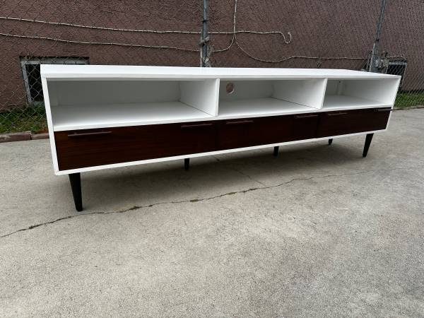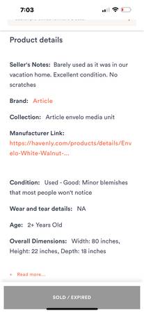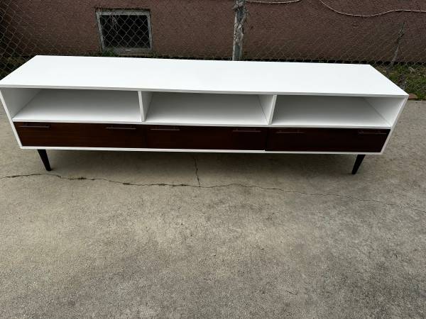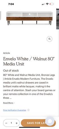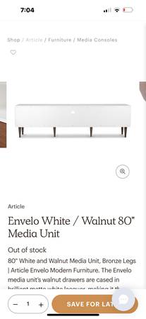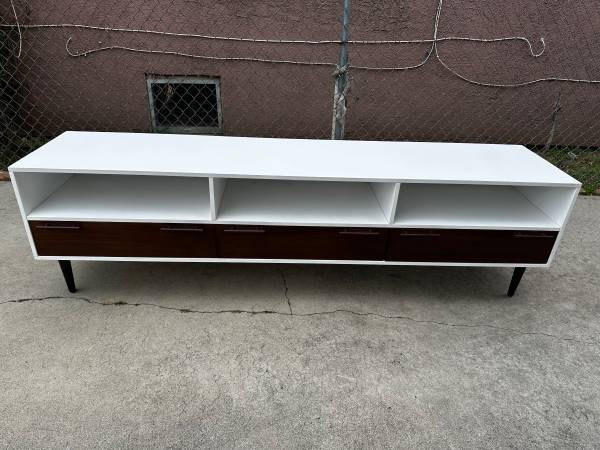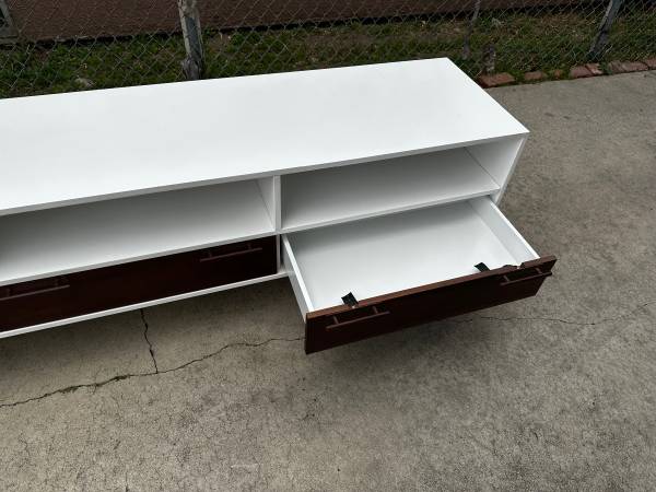 Article Envelo White / Walnut 80" Media Unit some wear on top otherwise in great condition drawer handles updated dimensions in the pictures disassembled. ‼️SERIOUS BUYERS ONLY ‼️ DELIVERY 🚚...