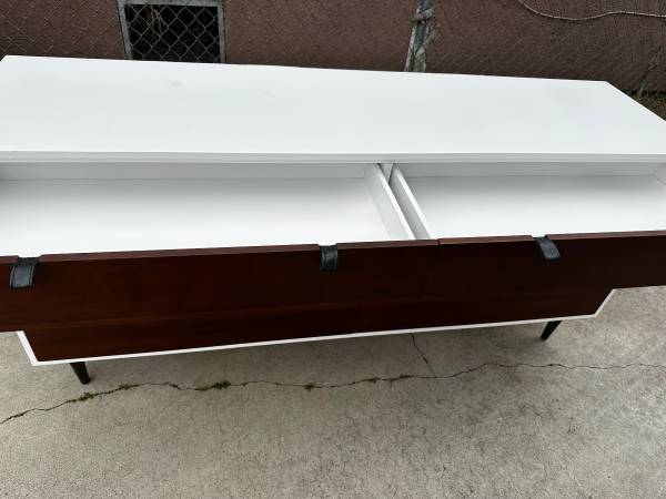 Article Envelo white/walnut six drawers dresser in good condition has some imperfection on top otherwise in great shape dimensions in the pictures. ‼️SERIOUS BUYERS ONLY ‼️ DELIVERY 🚚 AVAILABLE.