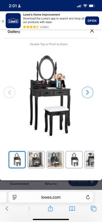 Brand New in a box Black Vanity and stool. Never used. Cash only. Must pick up in Hollywood. New this is minimum $200. First cash offer takes it.