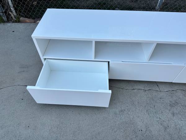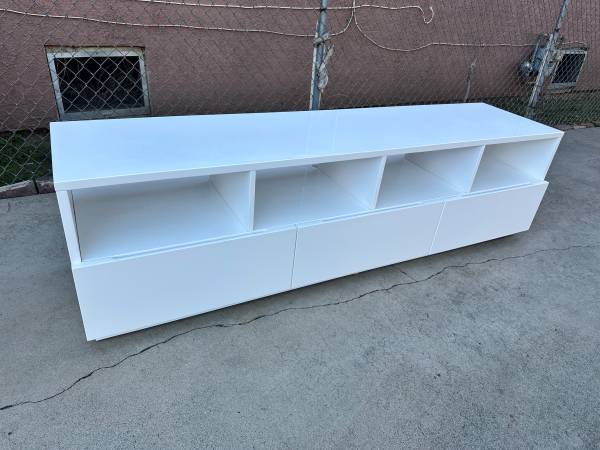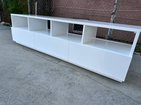 CB2 Chill media console sideboard normal wear overall in great condition no damage dimensions in the pictures. ‼️SERIOUS BUYERS ONLY ‼️ DELIVERY 🚚 AVAILABLE.