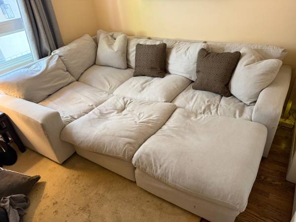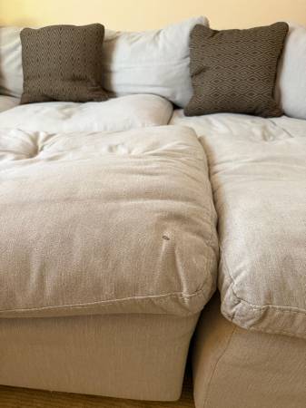Light colored couch- super comfortable. Can be used in living room, movie room or as a guest bed. As you can see on the picture the item has a few scratches on the edges. 80 inch 40 inch 30 tall 110...