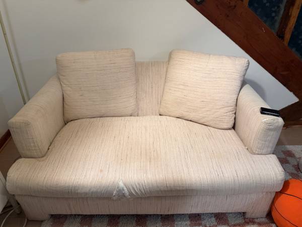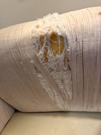 This is a custom made sofa from Alexvale Furniture. Stain and tear pictured, but just needs to be reupholstered. Definitely a DIY project but was originally a $1800 couch, lots of life left. 57.5"...
