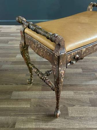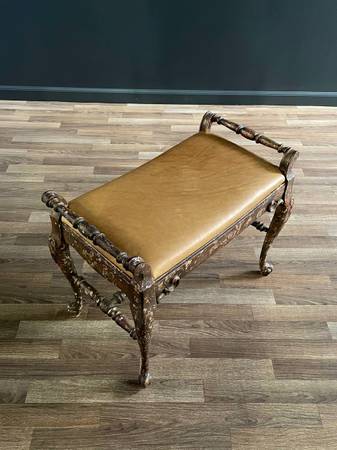 English Style Gilt Wood & Leather Bench with Cabriole Legs $895 - Original Vintage Condition Dimensions: 20.25”H x 25.50”W x 15.50”D Local Delivery Is Available 👉 www.vintagesupplystore.com 👈...