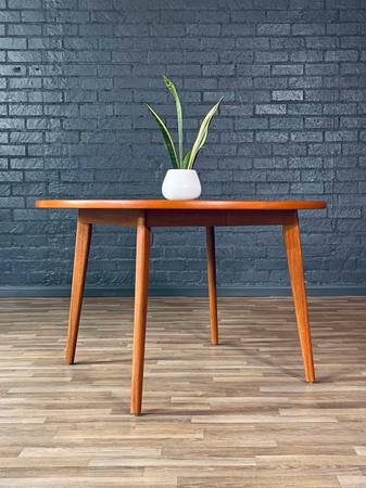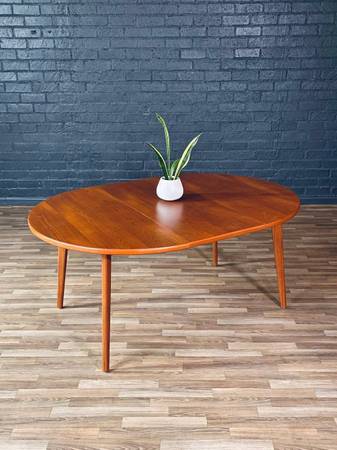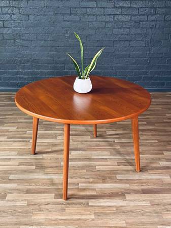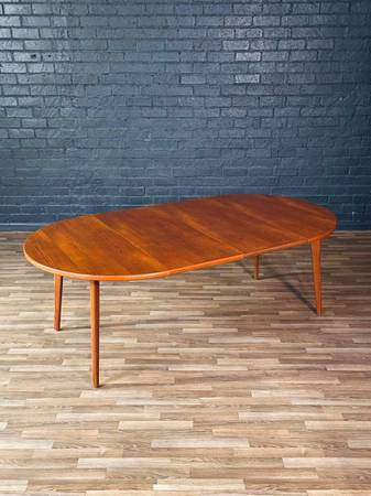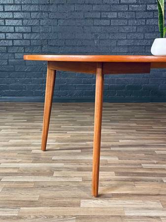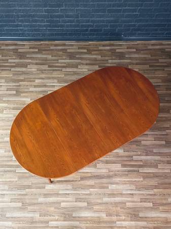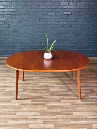 Designed by Karl-Erik Ekselius and manufactured by J.O. Carlsson in Sweden, this stunning 1960s teak dining table embodies the elegance and functionality of Scandinavian Modern design. The expertly refinished surface highlights the rich grain and warm hue of the teak, offering both durability and timeless appeal. Its versatile expanding design transitions from a round table to a spacious oval, making it perfect for both intimate dinners and larger gatherings. Tapered legs and clean lines give it a refined yet approachable character that fits beautifully in both modern and traditional interiors. A true testament to Swedish craftsmanship, this table is both a statement piece and a functional heirloom.
