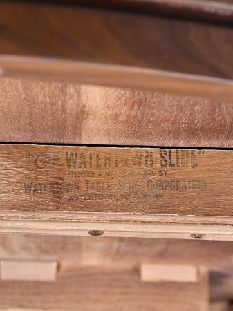 In the 1960s, expanding dining tables became increasingly popular in American homes as open-plan living and frequent entertaining grew more common. Makers often incorporated precision slide systems—like the Watertown “Walerite” slide seen here—to ensure smooth, reliable operation for decades. These mechanisms reflected a period when engineering and design worked hand in hand to support the evolving lifestyle of the modern family.