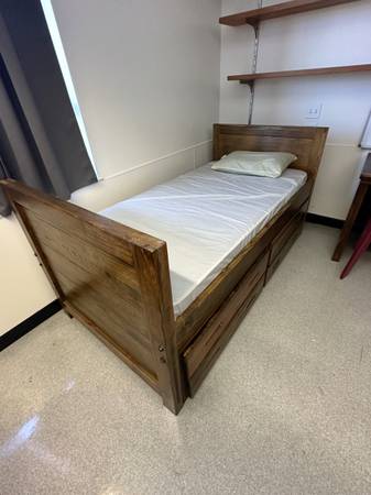 We have a bed (disassembled/no mattress) and mattress (not match with the disassembled bed) that you can use in your home..