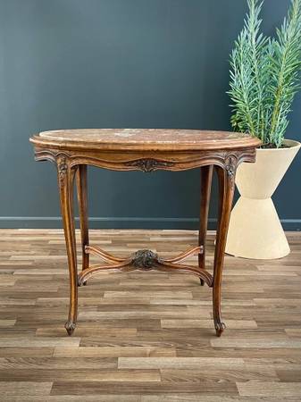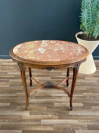 French Louis XV Style Oval Table with Marble Top, c.1930’s $950 - Original Vintage Condition Dimensions: 30”H x 36”W x 25”D Local Delivery Is Available 👉 www.vintagesupplystore.com 👈 Instagram:...