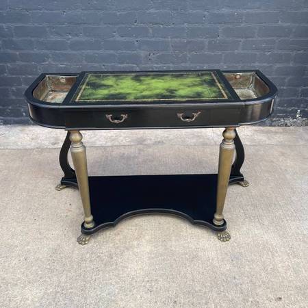 French Neoclassical Ebonized & Leather Top Console Table with Planter and Brass Claw Feet, c.1940’s $1,100 - Original Vintage Condition Dimensions: 31”H x 48”W x 19.75”D Local Delivery Is...