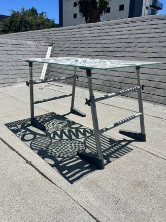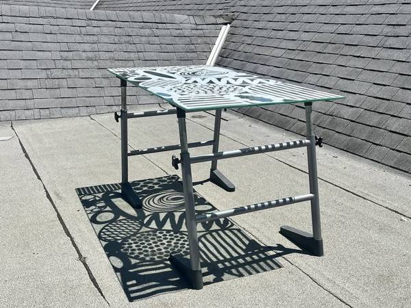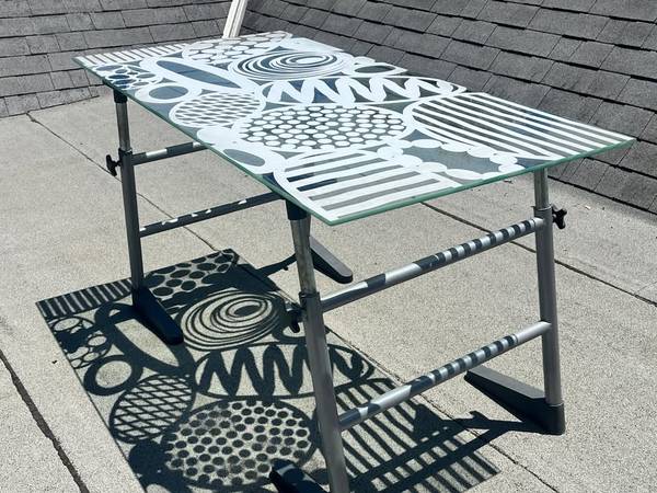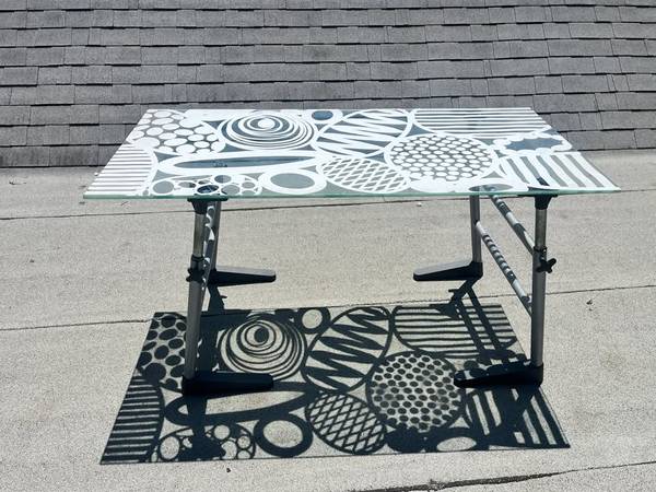 Glass Top table with Grey Sawhorse base : IKEA VIKA GLASHOLM Table