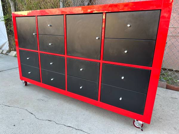 High Red Gloss buffet entertainment cabinet in great condition dimensions 59 inches wide 35 height 16 depth on wheels casters with locking. ‼️SERIOUS BUYERS ONLY ‼️ DELIVERY 🚚 AVAILABLE.