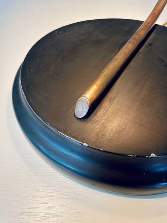 This sculptural table lamp beautifully captures the essence of Hollywood Regency glamour with its graceful brass arch and twin conch seashell shades. The organically shaped shells glow warmly when illuminated, creating a captivating interplay between nature and luxury. Its patinated brass frame contrasts elegantly against the black painted base, adding depth and sophistication to its design. Meticulously rewired for modern use, the lamp remains faithful to its 1970s craftsmanship while offering reliable functionality. A statement piece that merges natural elegance with mid-century opulence, perfect for any refined interior.