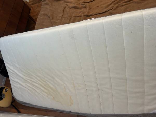 Gently used mattress. It was in a guest room for about 5 years! There’s a coffee stain.