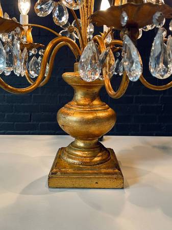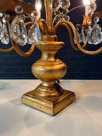 Italian Gilt Tole Floral Crystal Candelabra Table Lamp, c.1950’s