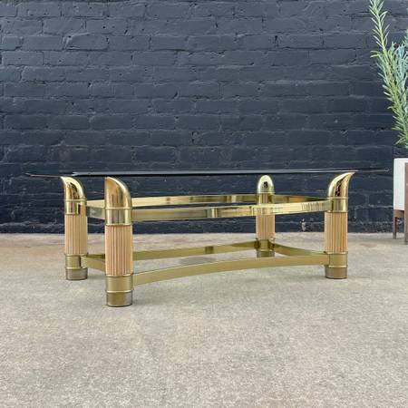 Italian Mid-Century Modern Brass Horn Style Coffee Table, c.1970’s $795 - Original Vintage Condition Dimensions: 17.25”H x 54.75”W x 39”D Local Delivery Is Available 👉 www.vintagesupplystore.com 👈...