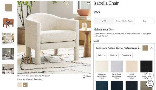 Offering a lightly used Isabella Chair. Retails for $929 at West Elm. The refined frame of the chair is a nod to Post Modern design, well suited for both modern and traditional interiors. It is very...